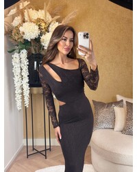 Adore lace cut out dress brown