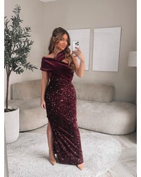 Amore velours asymetrique dress bordeaux