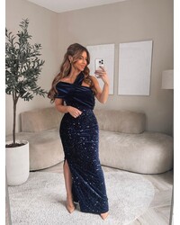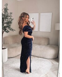 Amore velours asymetrique dress navy