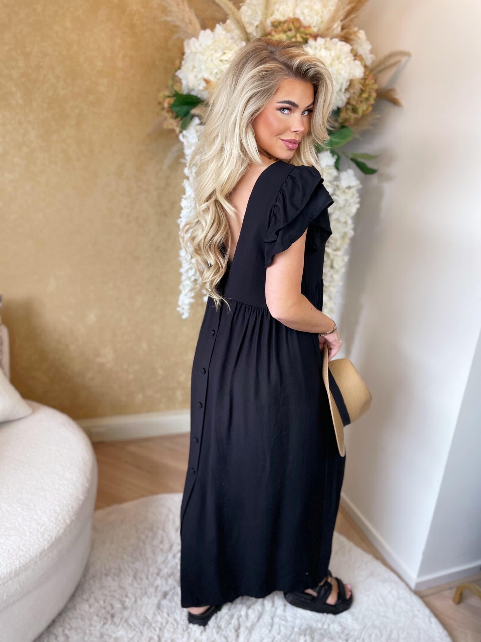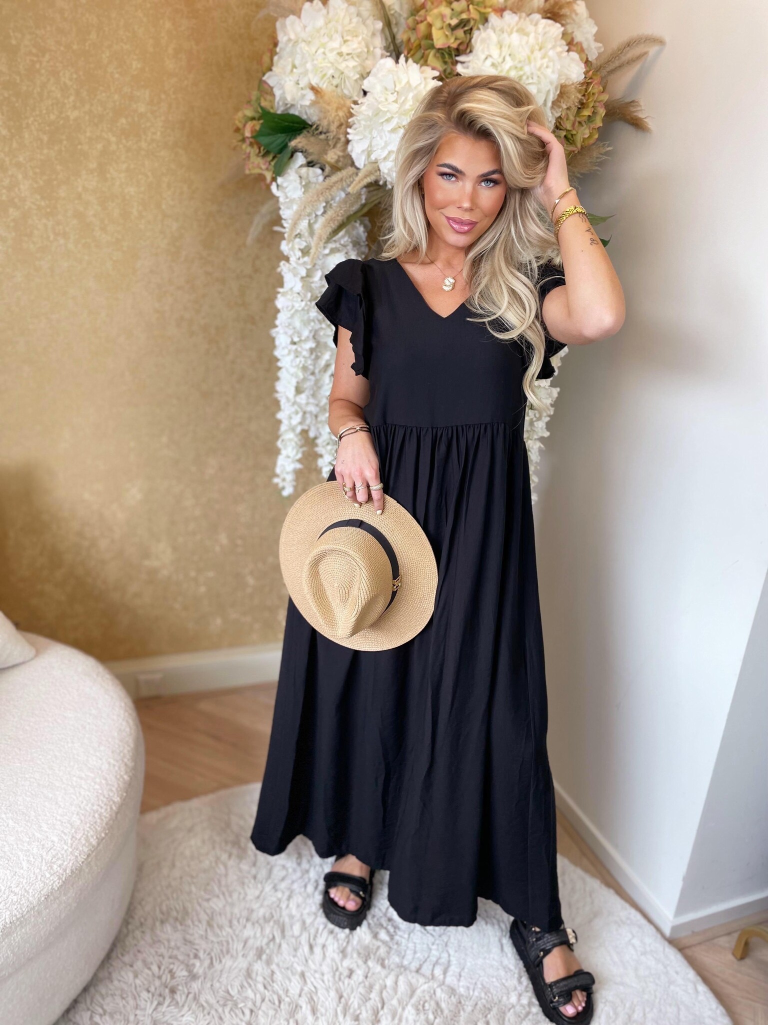 Boheme chic volants dress black