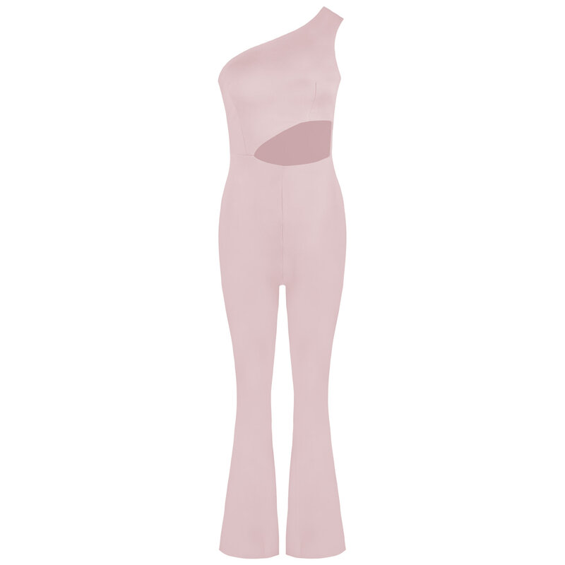 Cut out one shoulder jumpsuit light pink