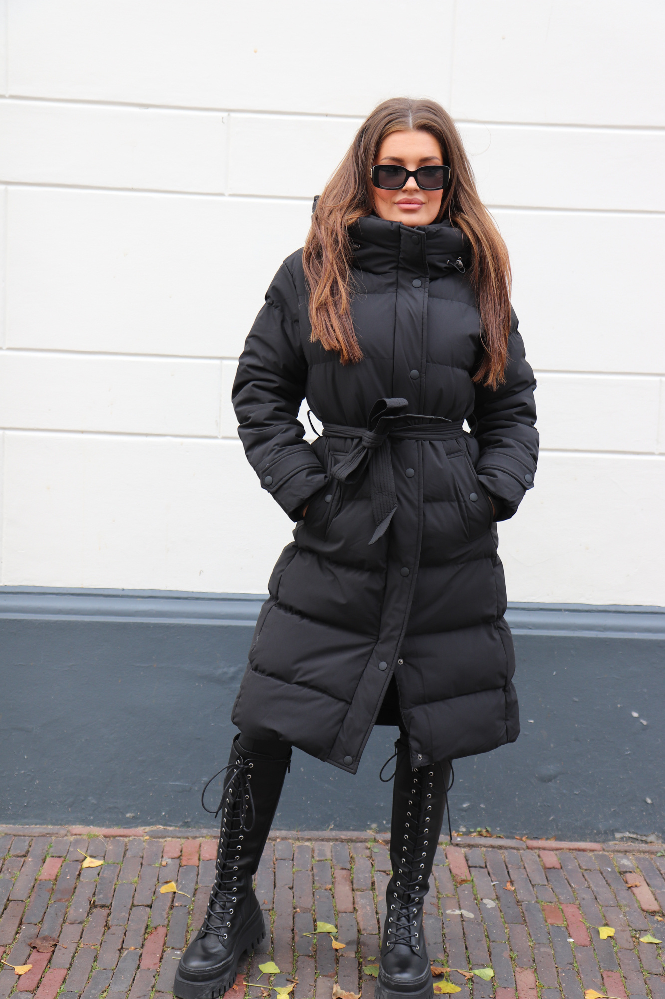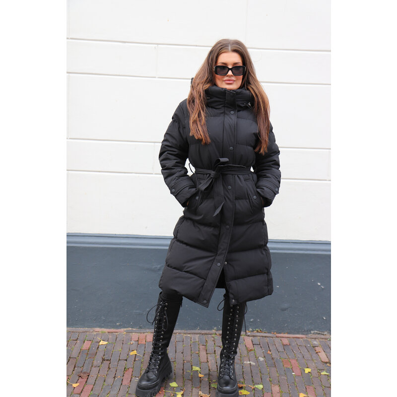 Khloe belted puffer jacket black