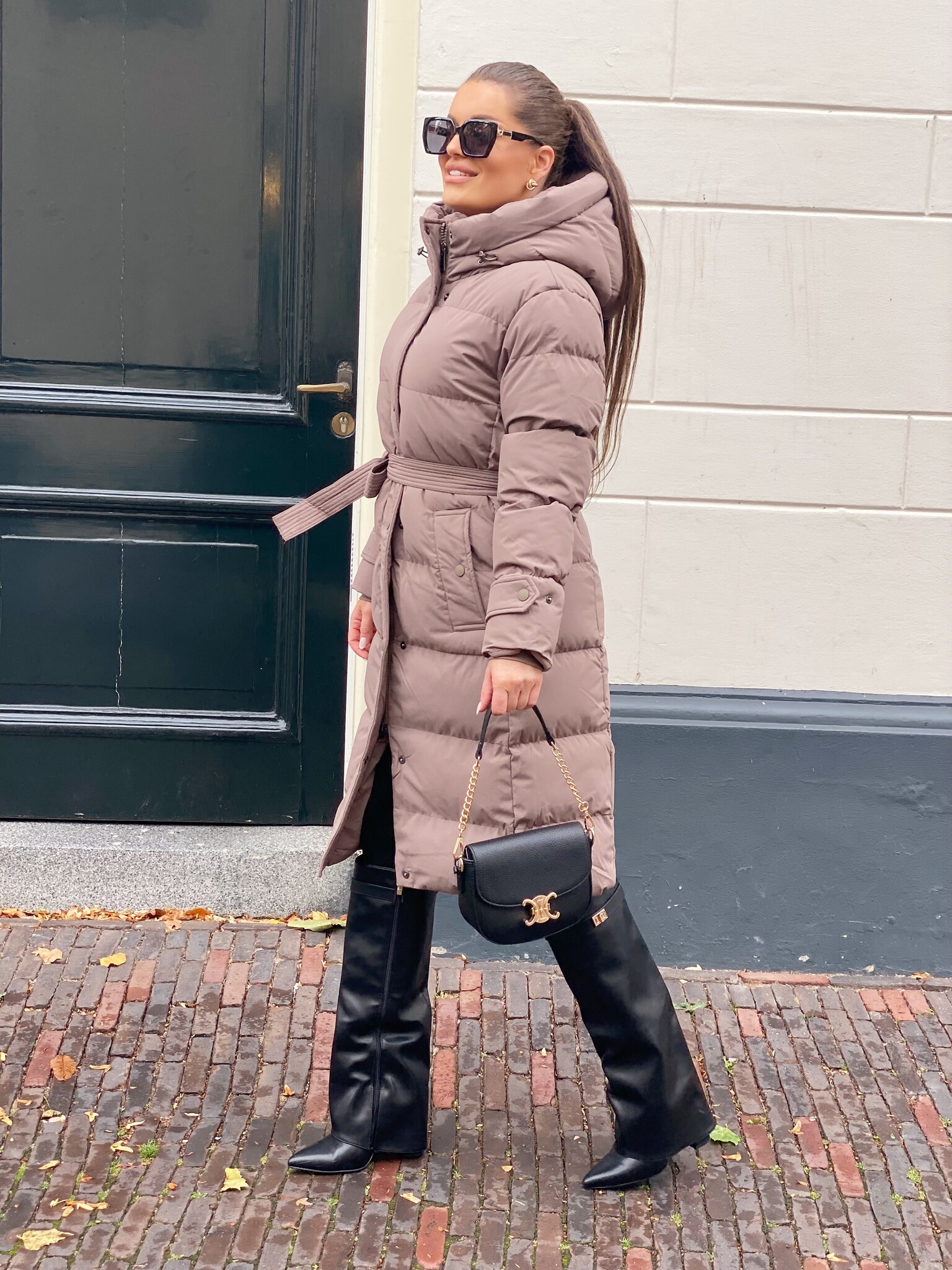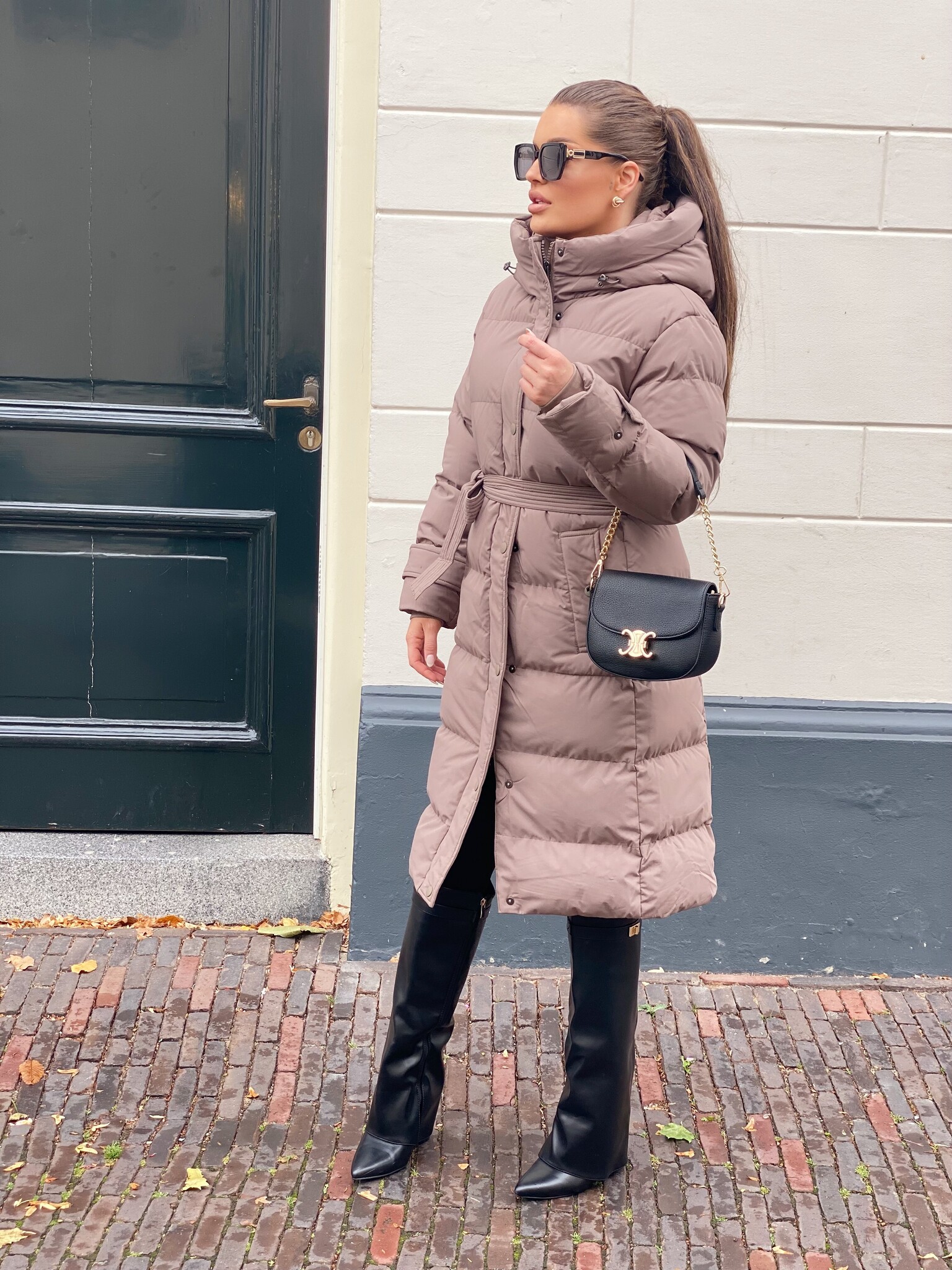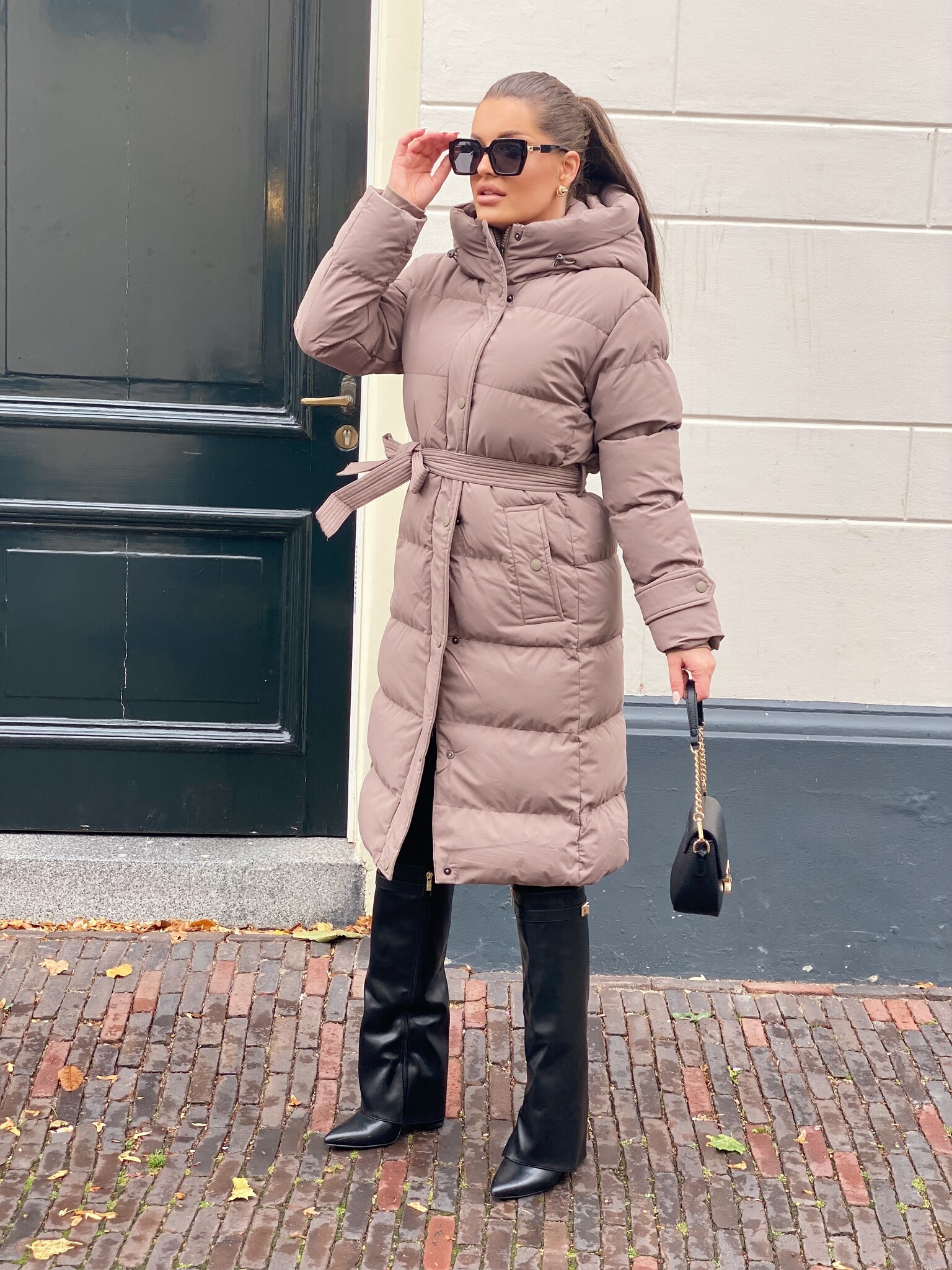 Khloe belted puffer jacket taupe