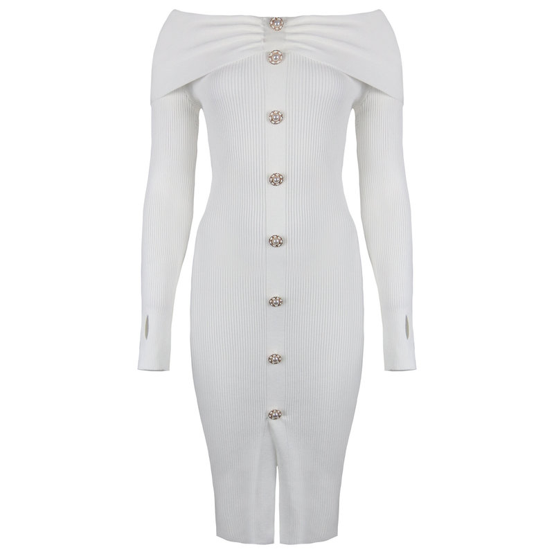 Loretta off shoulder knitwear dress white