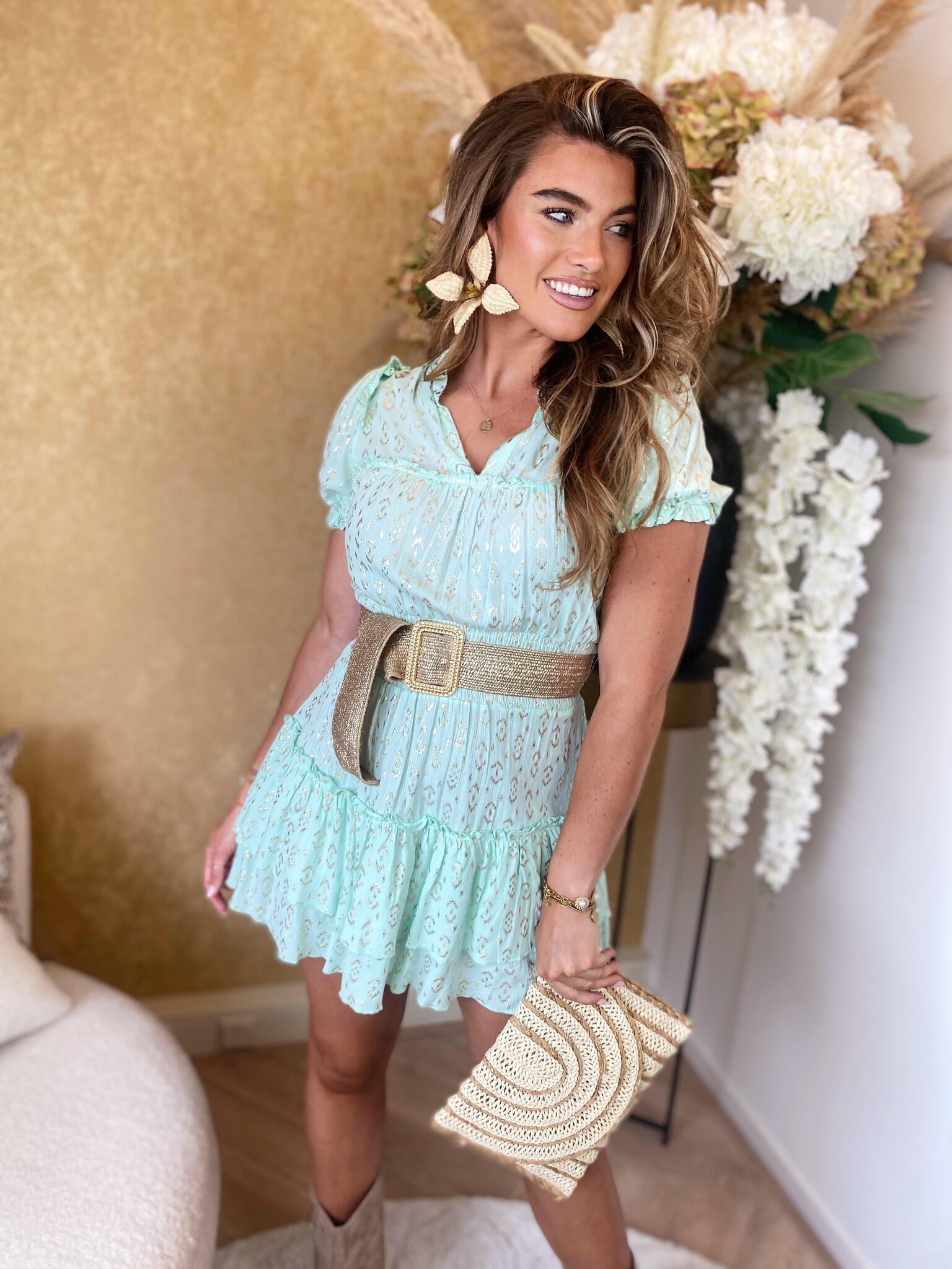 Malaya metallic detail dress mint