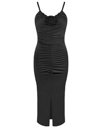 Rose detail silk maxi dress black