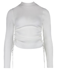 Ruched side knitwear top white