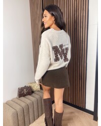 Studded ny sweater taupe/chocolate