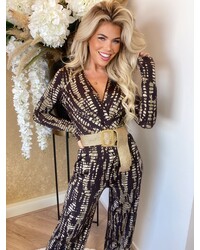 Donna travel long sleeve print jumpsuit brown