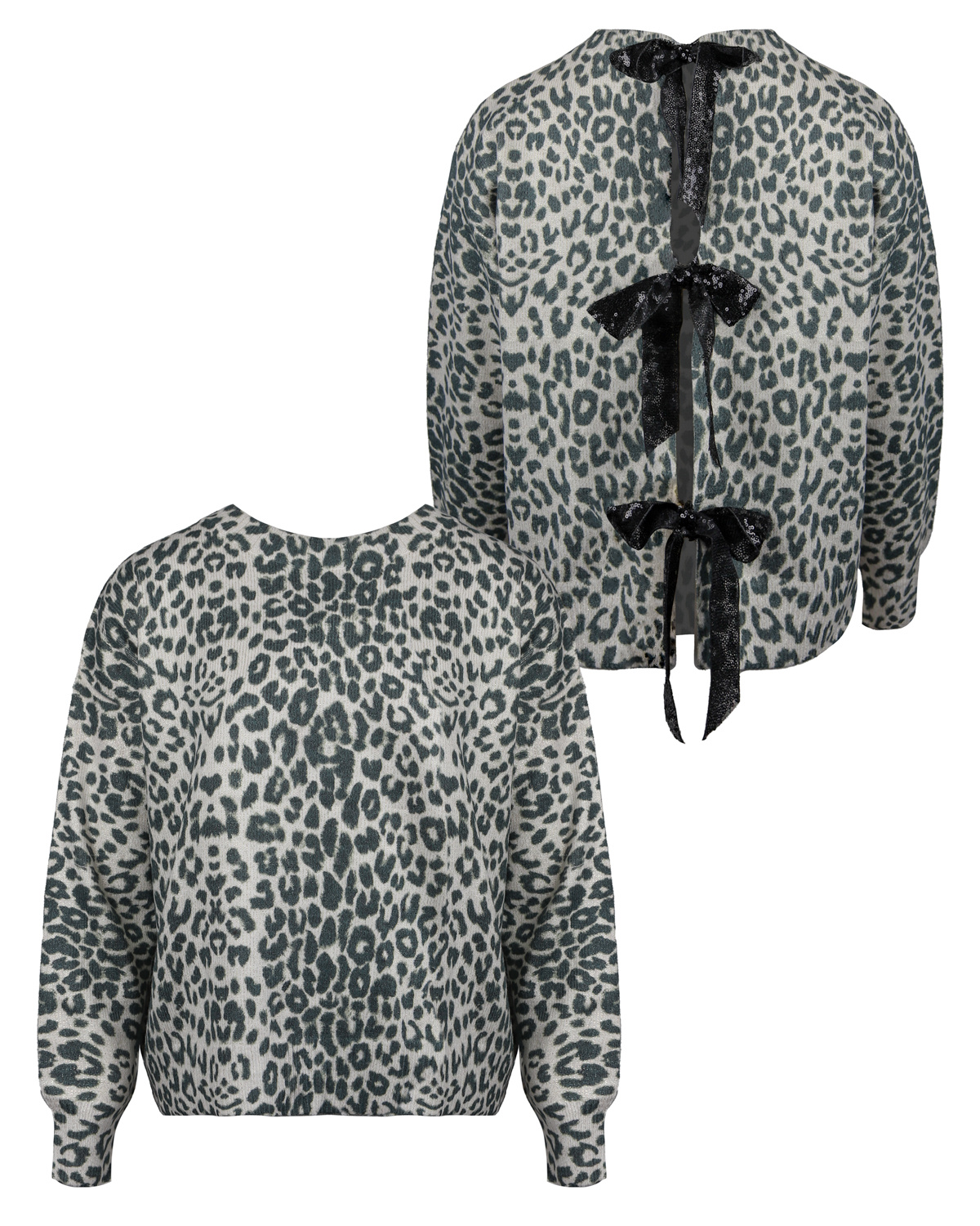 Haven sequin bow leopard sweater