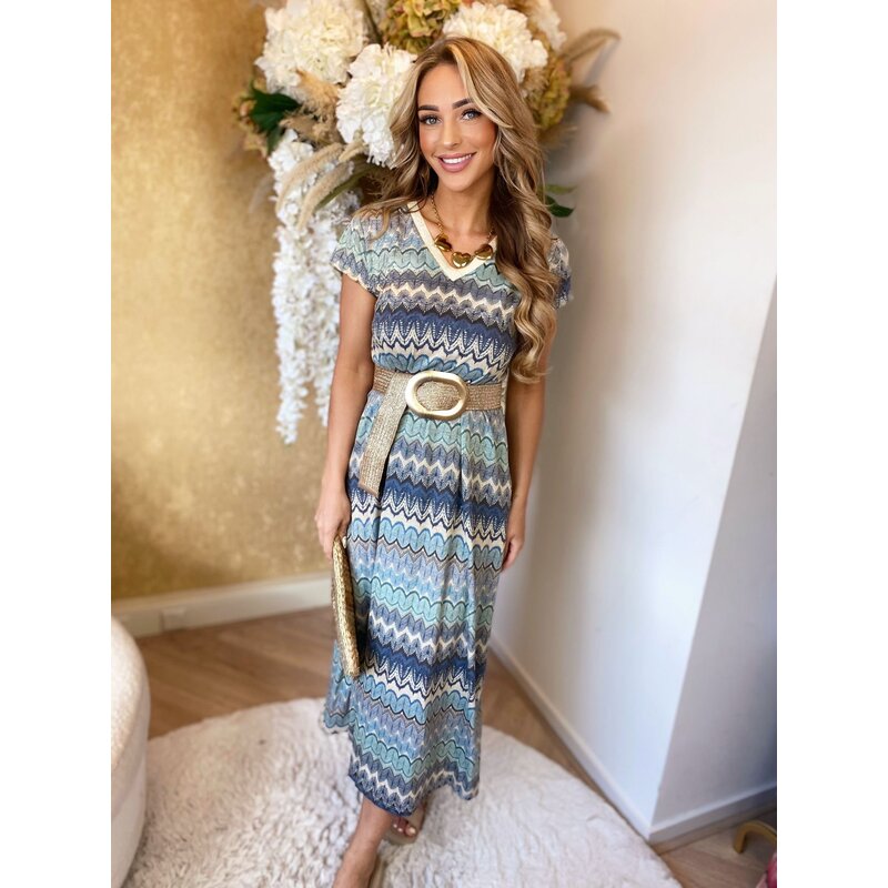 Indy print lurex dress blue