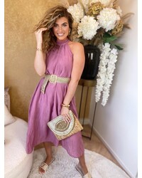 Jojo halter linnen maxi dress deep pink