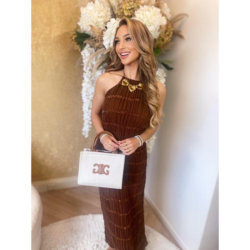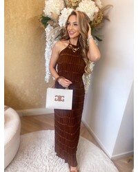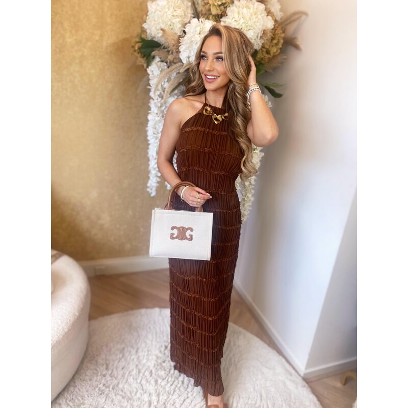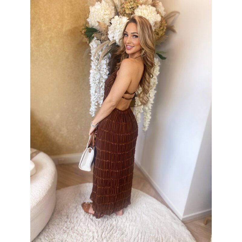 Liena backless halter ruffle dress brown