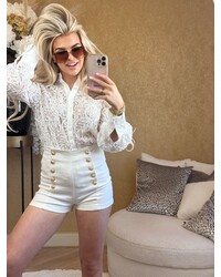 Marylou gold button denim short white