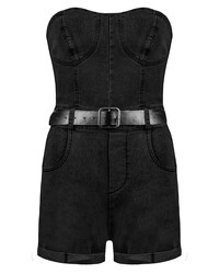 Thalia belted denim playsuit black
