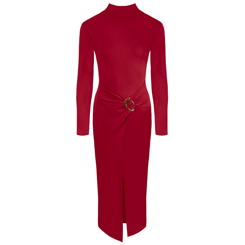 MUSTHAVE ALERT! Deze prachtige jurk heeft een echte chique look. De Abby jurk is gemaakt van een stretch stof, heeft een maxi lengte, split aan de voorzijde, gouden buckle en geplooide details.... Lees meer