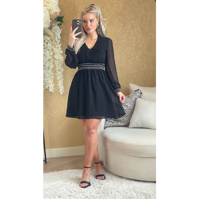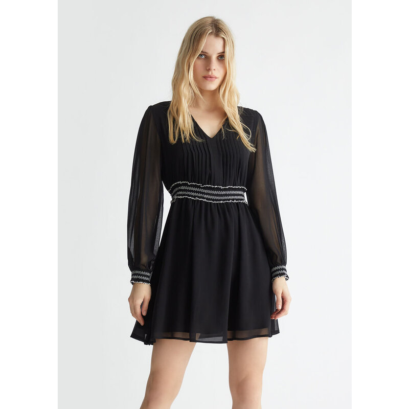 PRINT LOVE! Deze jurk is helemaal gemaakt van luchtige stof. De jurk heeft bij de borst geplooide details gecombineerd met witte details.