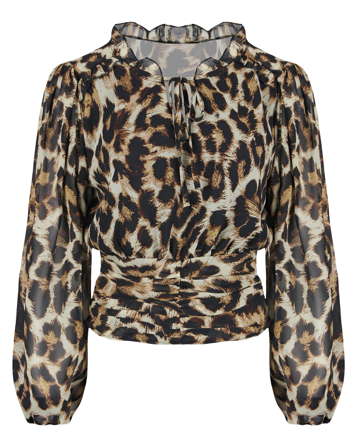 PRINT LOVE! De Aliza blouse heeft een prachtige luipaard print! Hoe leuk is deze nieuwe blouse voor jouw garderobe. De blouse heeft plooien in de taille, balloon mouwen en een touwtje in de hals.... Lees meer