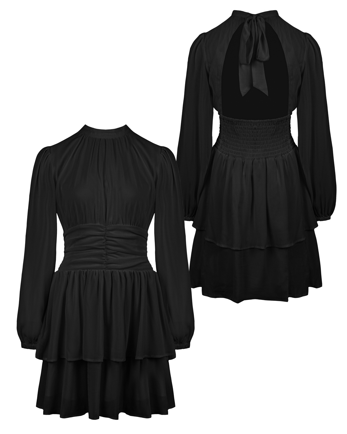 OPEN BACK! Deze prachtige Allison jurk is gemaakt van een luchtige stof. De jurk heeft een open rug, een strik touwtje, plooien in de taille en uitlopend fit.... Lees meer