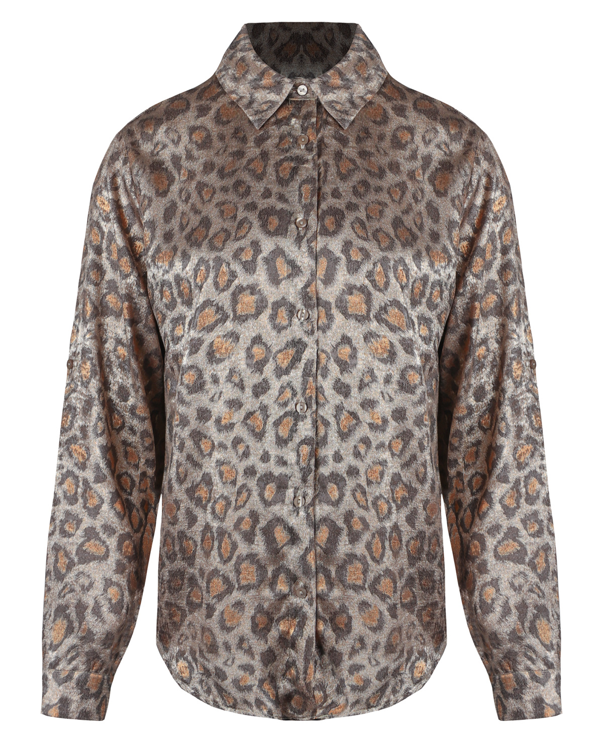 METALLIC LOVE! Deze nieuwe Amalia blouse mag niet ontbreken in jouw garderobe. De blouse is van een metallic stof met luipaard print. Combineer met de bijpassende broek voor een complete look.... Lees meer