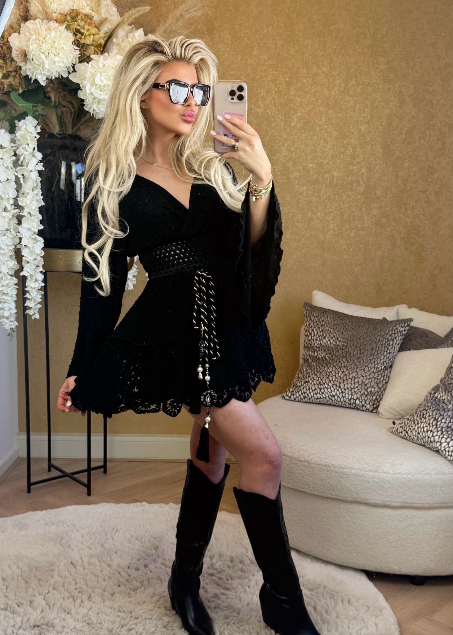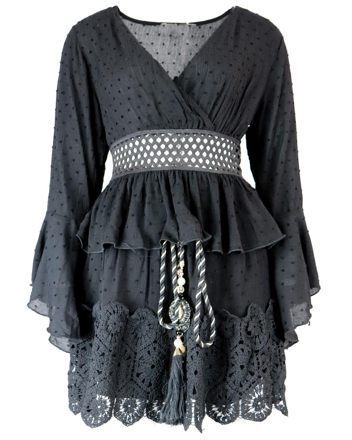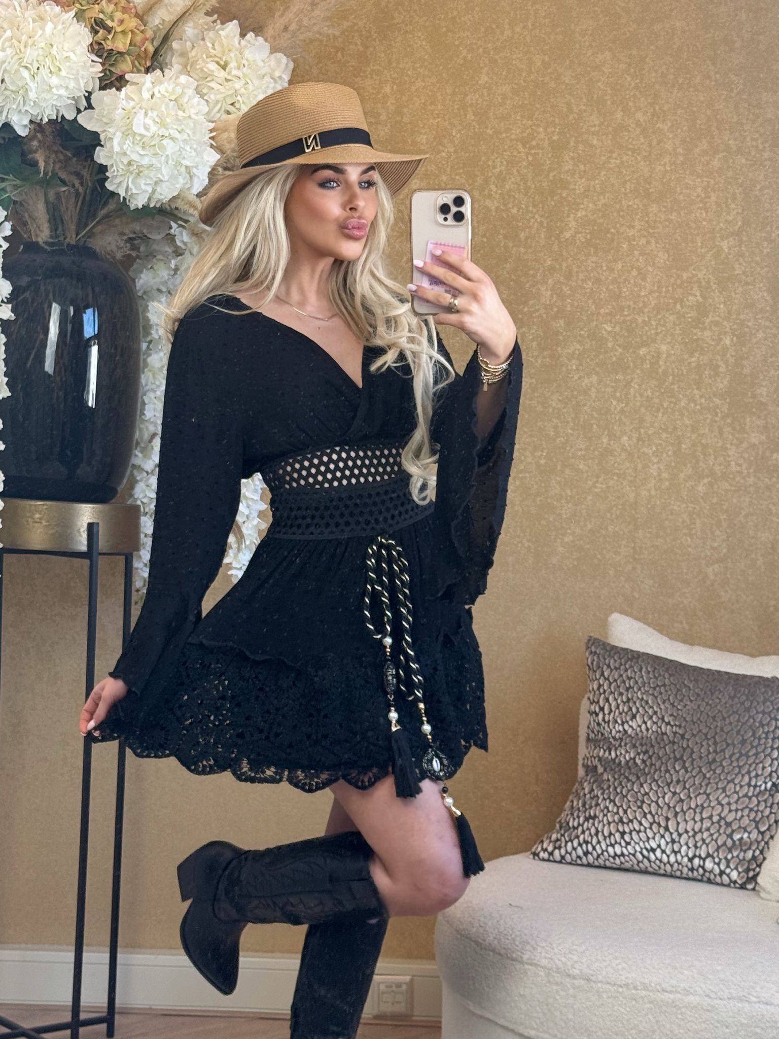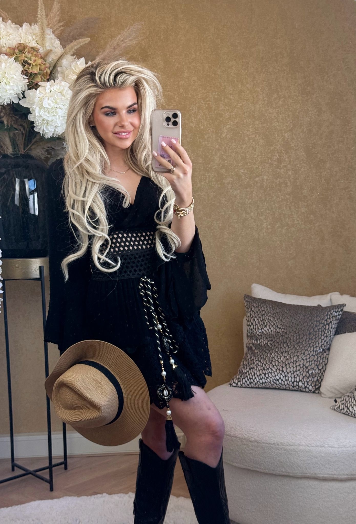 LACE DETAIL! Dit super leuke ibiza setje heeft een subtiele stippen print met aan de onderkant van de rok een kanten rand. De set bestaat uit een losse top en rok. Ze kunnen ook los gedragen worden.... Lees meer