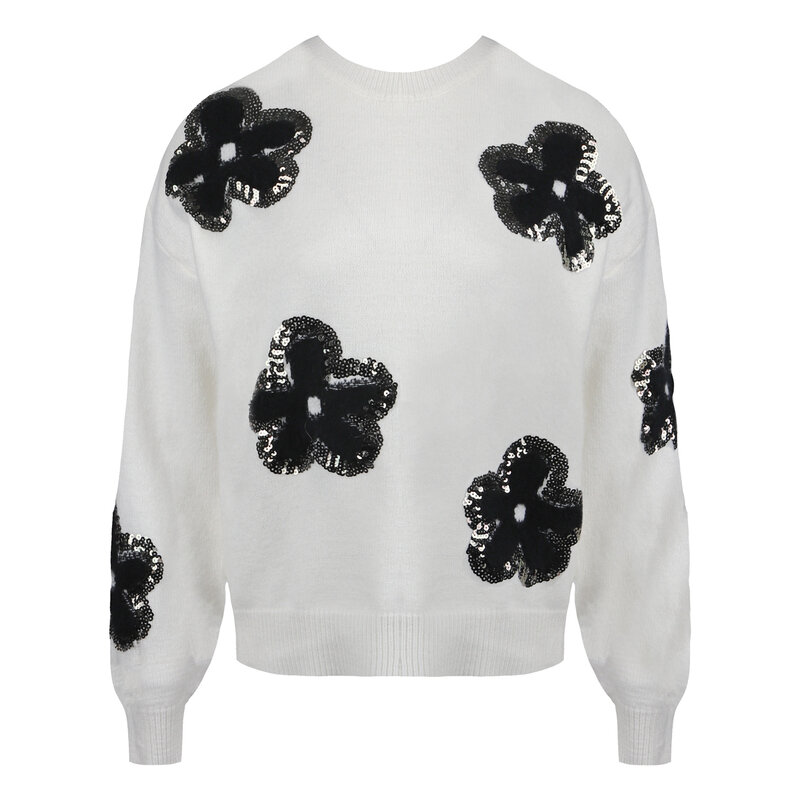 FLOWER DETAIL! Hoe schattig is deze nieuwe sweater?! De trui heeft allemaal bloemen aan de voorzijde zitten met een sequin detail. Door de dikke stof is hij heerlijk warm.... Lees meer