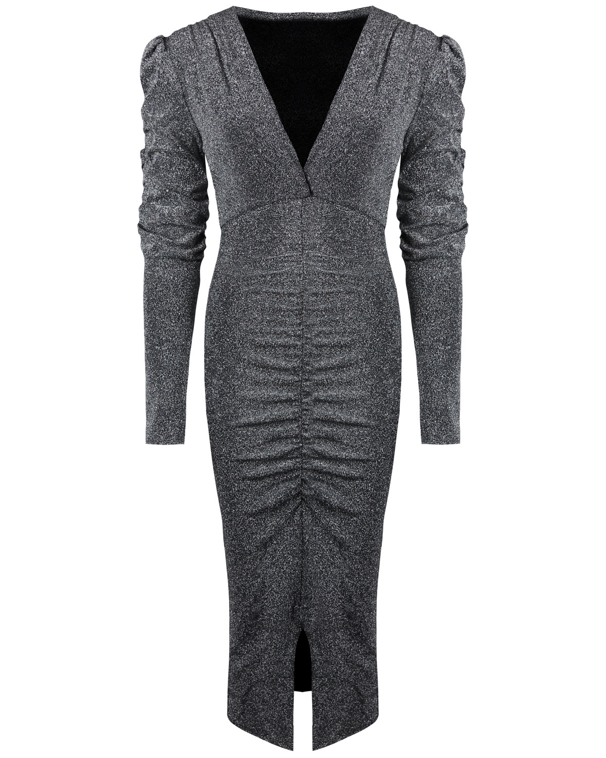 MUSTHAVE ALERT! We zijn helemaal verliefd op deze nieuwe Andrea jurk! De jurk heeft meerdere plooi details gecombineerd met een pofmouwtje en een split aan de onderkant. De jurk is gemaakt van stretchy glitter stof.... Lees meer