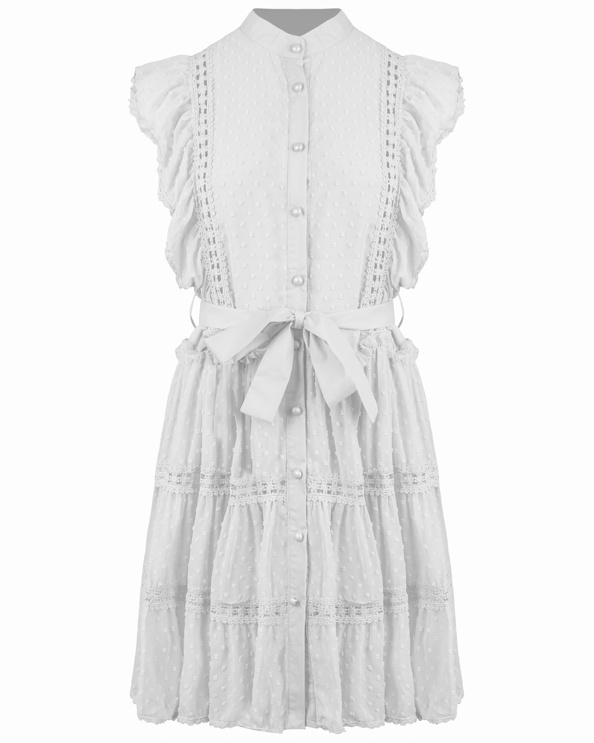 RUFFLE LOVE! Deze jurk is een echte musthave voor je garderobe? Deze dress is gemaakt van een mooie stof met crochet detail erin met een hoge hals. De jurk heeft een mini lengte, speelse mouwtjes en een ceintuur om de taille....... Lees meer