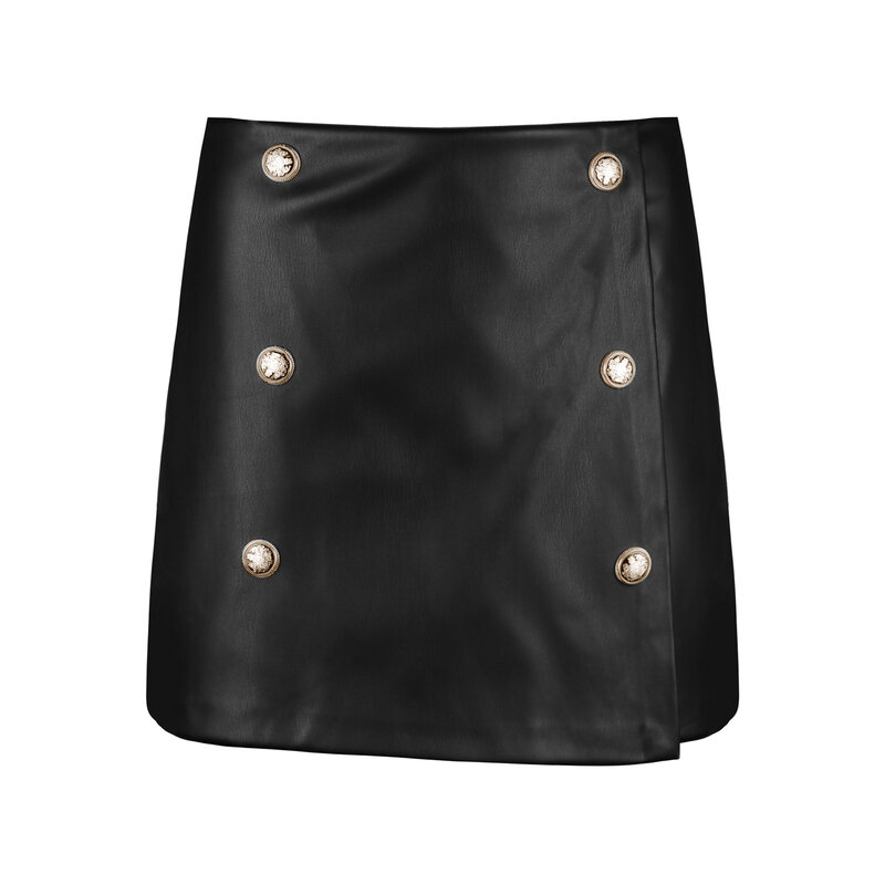 JAIMY Aura gold button leather skort