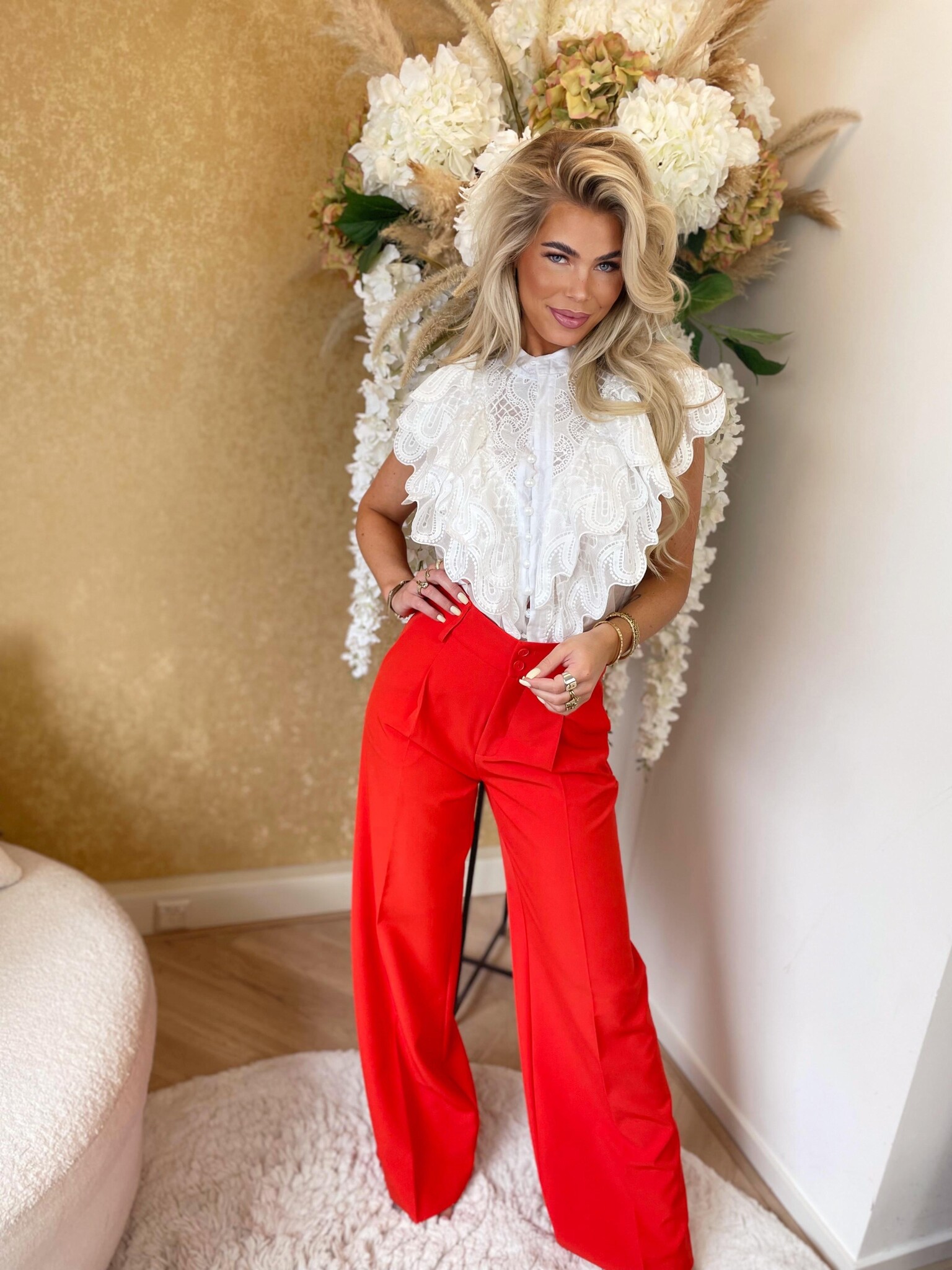 MUSTHAVE ITEM! De Bella pantalon heeft een wijd uitlopende fit. De broek heeft een heerlijk hoge taille met een dubbele knoop sluiting. Prachtig casual te dragen met een t-shirt of met een blazer voor een chique look... Lees meer