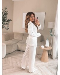 Steel de show met deze chique satijnen blazer. De golden buttons geven een trendy touch aan deze classy look. Perfect voor een dinner date of business event met flair! Maak de look af met de Bellora silk pantalon.