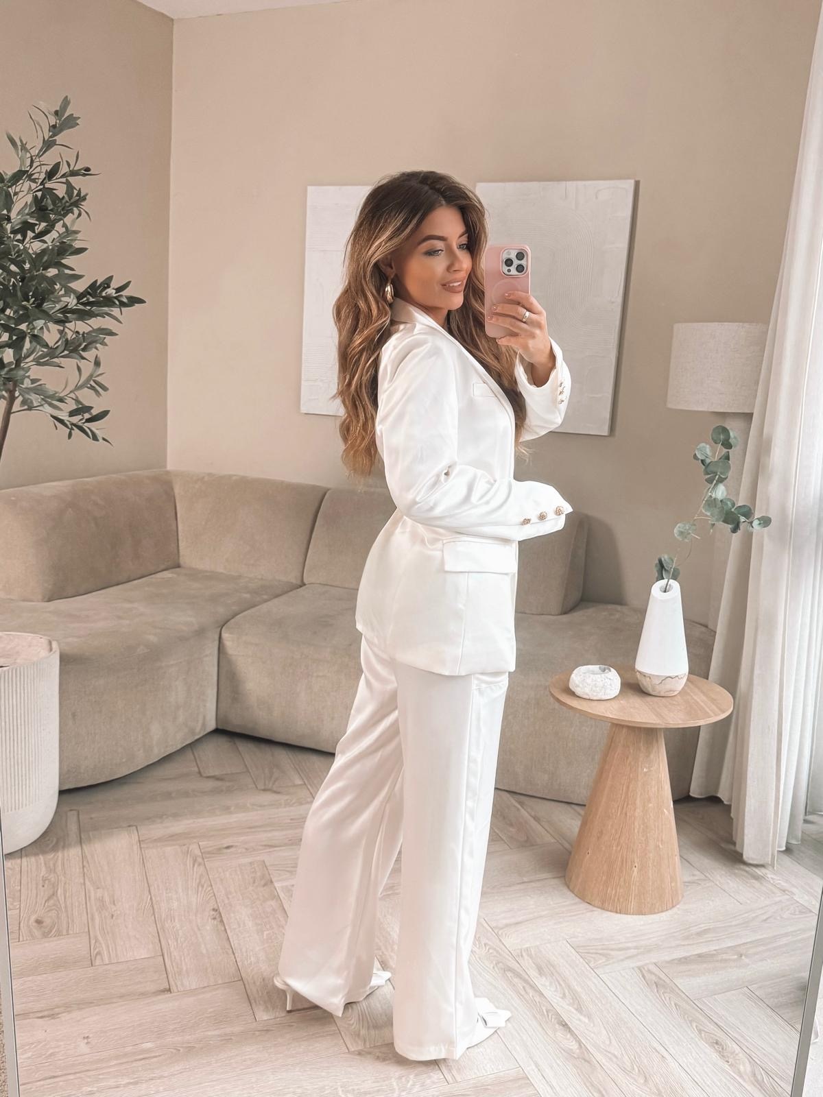 CLASSY! Deze elegante satijnen pantalon zit niet alleen heerlijk, maar straalt pure klasse uit. Met zijn vloeiende pasvorm en subtiele glans is hij perfect voor zowel een stijlvolle werkdag als een avondje uit. Combineer 'm met de bijpassende blazer.