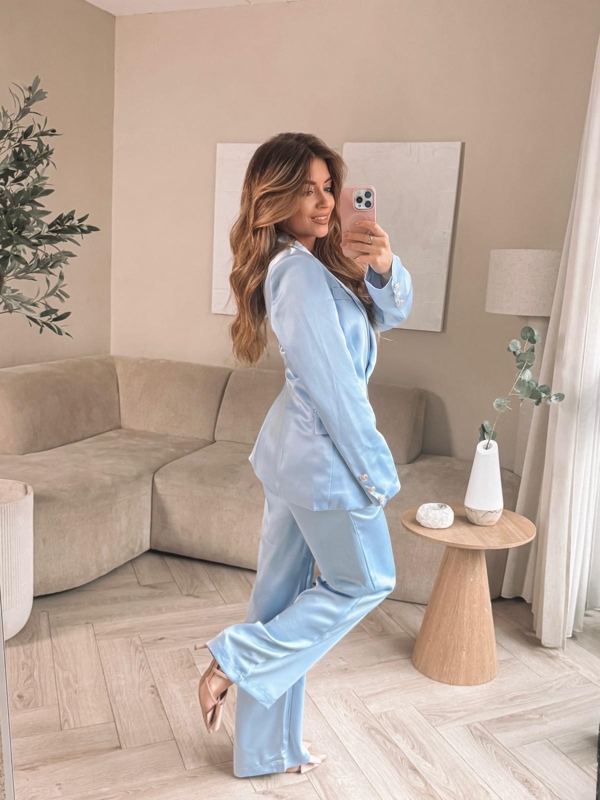 CLASSY! Deze elegante satijnen pantalon zit niet alleen heerlijk, maar straalt pure klasse uit. Met zijn vloeiende pasvorm en subtiele glans is hij perfect voor zowel een stijlvolle werkdag als een avondje uit. Combineer 'm met de bijpassende blazer.... Lees meer
