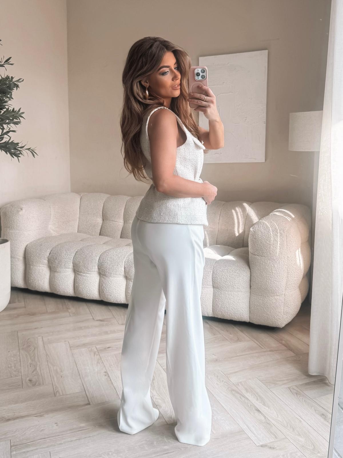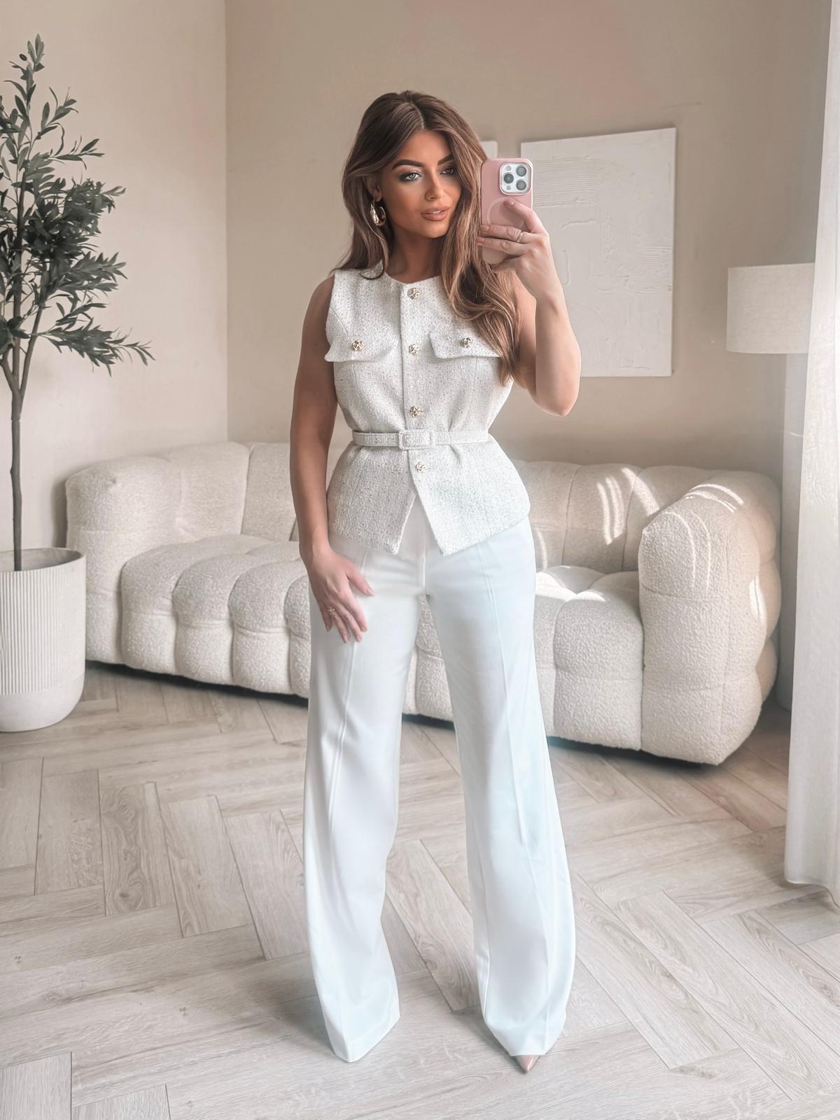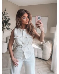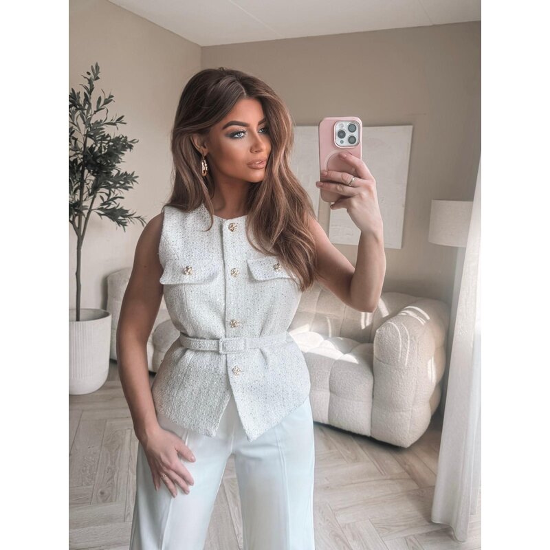 TREND ALERT! Een gilet/top mag niet ontbreken in jouw garderobe. Hoe leuk is deze gemaakt van luxe tweed stof met gouden knopen en bijpassende ceintuur?!... Lees meer