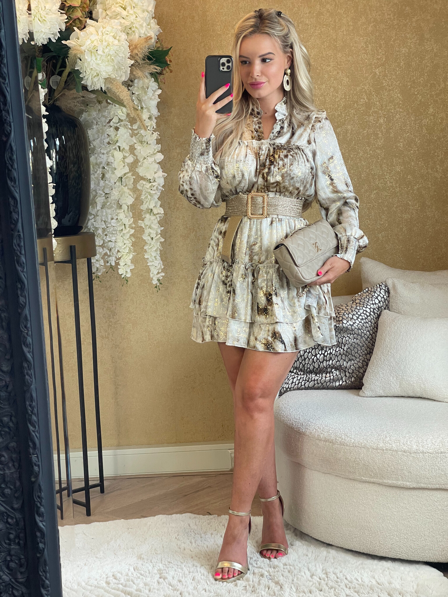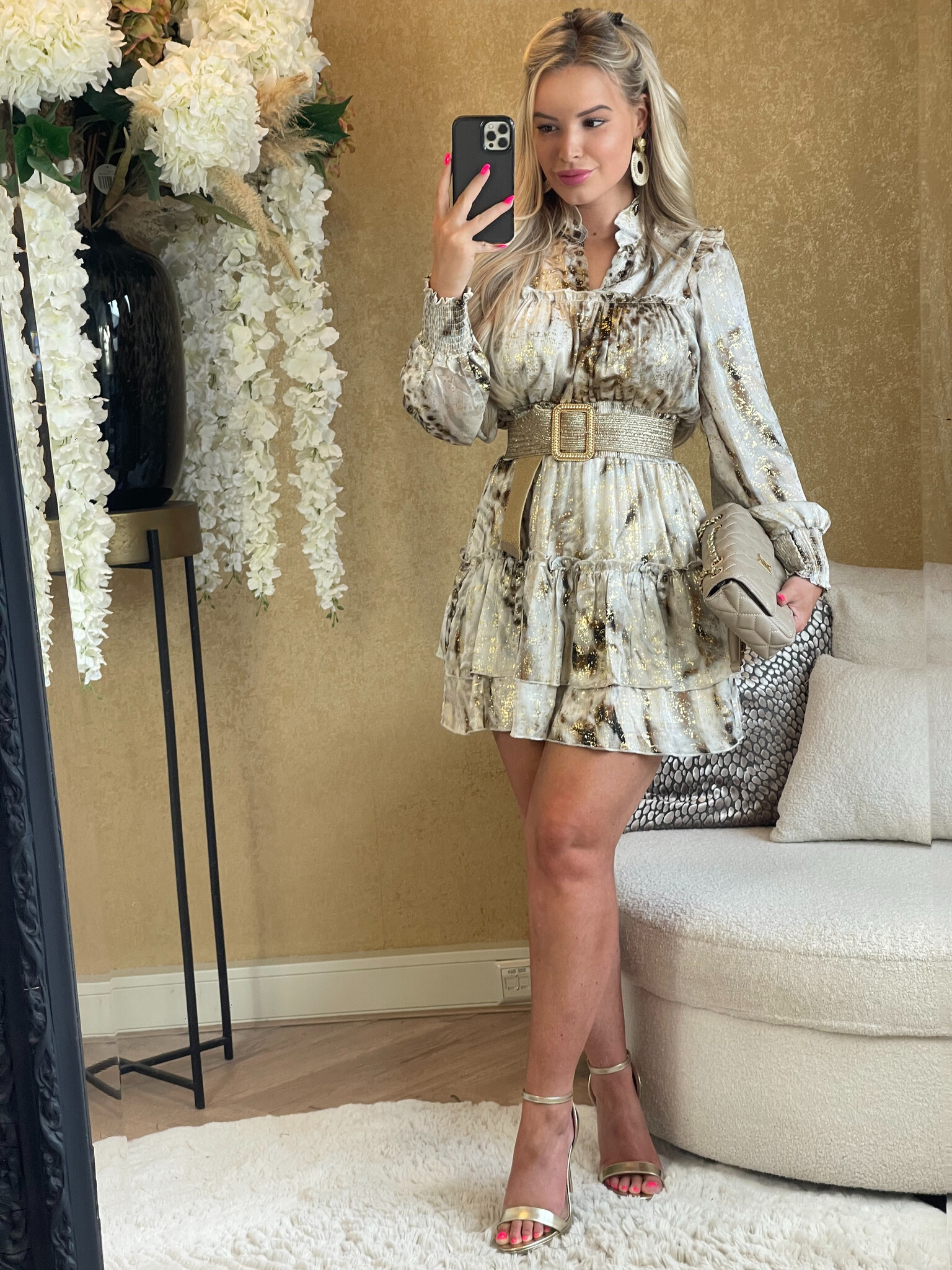 JAIMY Benthe printed metallic dress beige