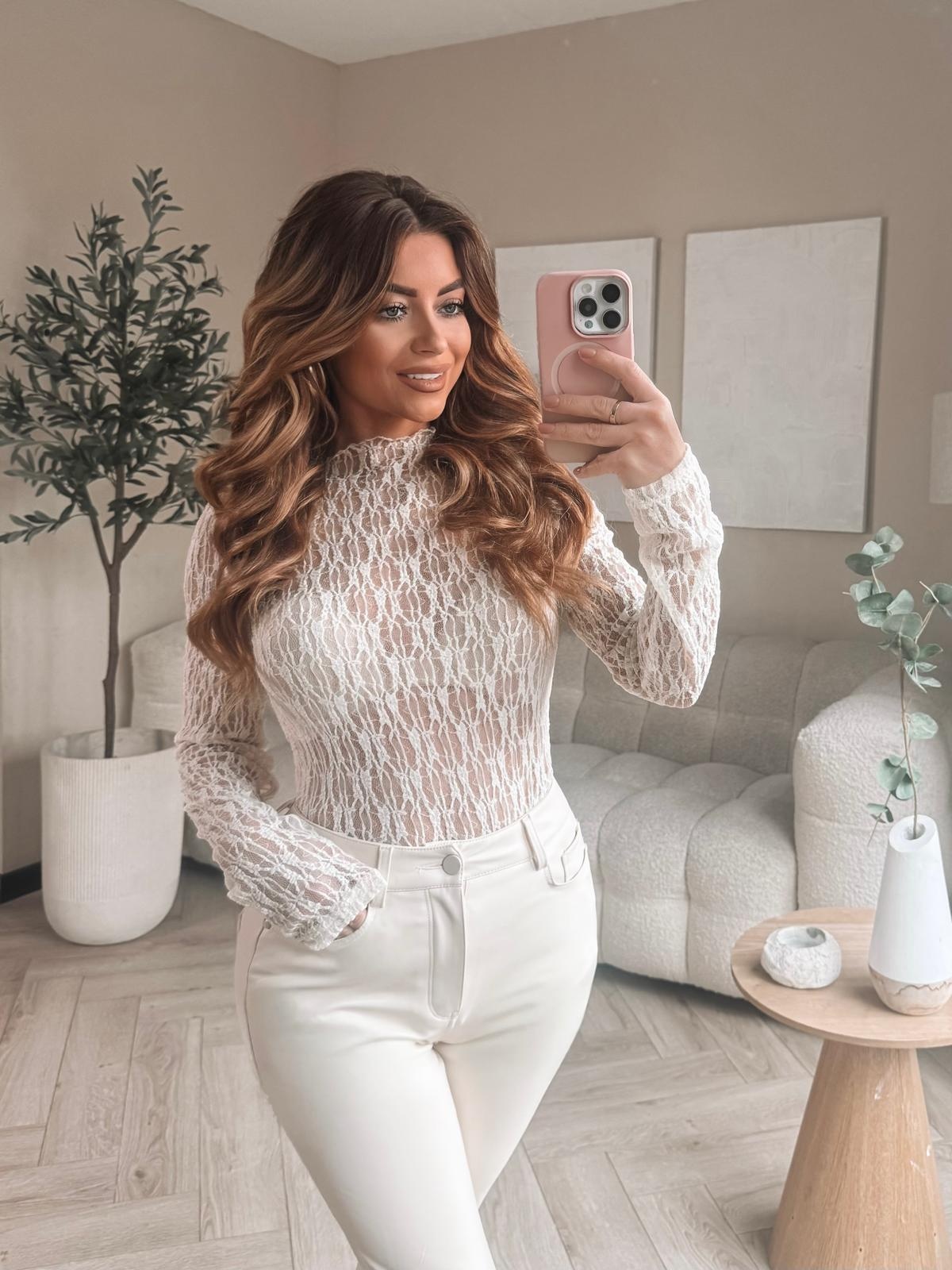 Deze mesh top is dé perfecte mix van elegantie en allure. Perfect voor een avondje uit of onder jouw favoriete blazer voor een dag op kantoor. Maak de look compleet en combineer met 1 van onze rokjes of pantalons.... Lees meer
