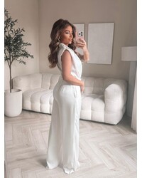 Deze satijnen jumpsuit heeft een de flatterende pasvorm, de bijpassende riem accentueert de taille en zorgt voor een vrouwelijk silhouet.