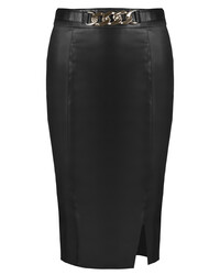 CHAIN DETAIL! Een leren rok mag niet ontbreken in jouw garderobe omdat je deze eindeloos kan dragen. Hoe leuk is deze met midi lengte en ketting detail in de taille?!