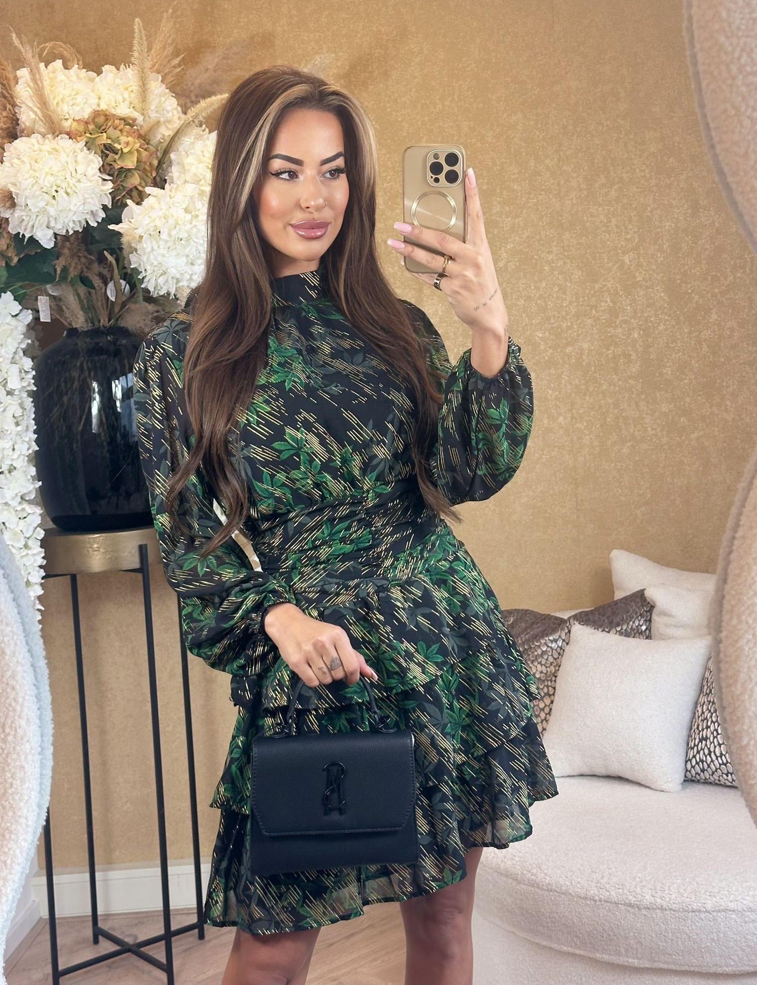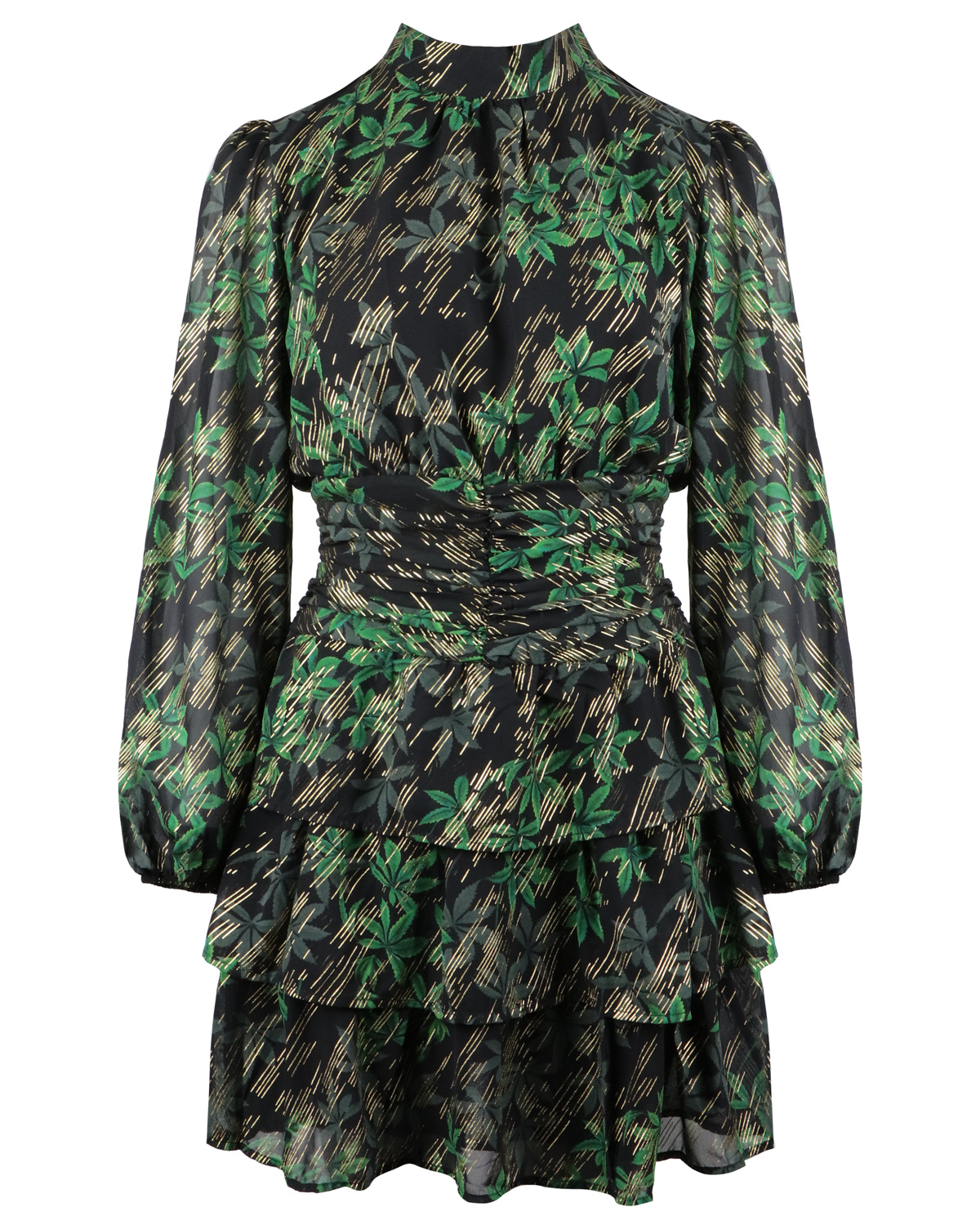 PRINT LOVE! De Claire jurk heeft een prachtige print met gouden details. De jurk heeft een hoge hals en geplooide details in de taille wat zorgt voor een afslankend effect. Combineer de jurk met high heels of boots om de look af te maken.... Lees meer