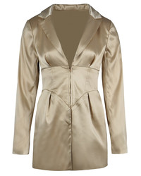 SATIN LOVE! De naam zegt het al deze jurk heeft een corset detail in de taille. De jurk heeft een blazer kraag en diepe v-hals. Perfect voor een feestje met stoere boots of high heels.