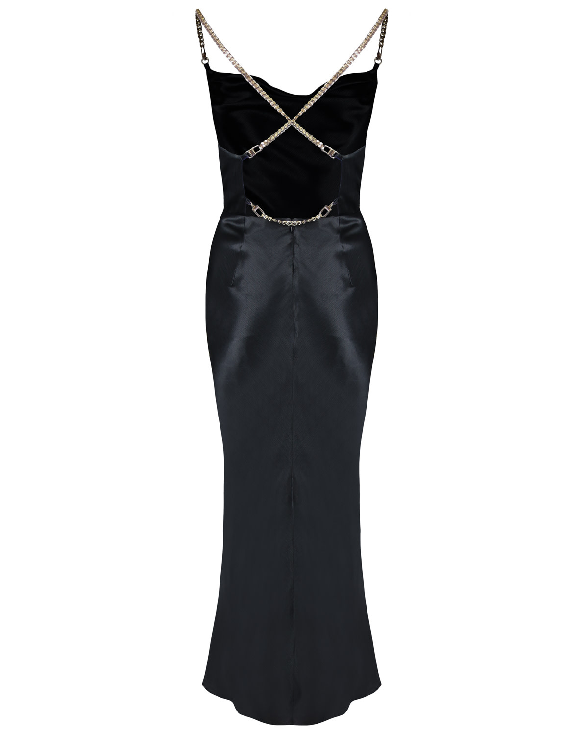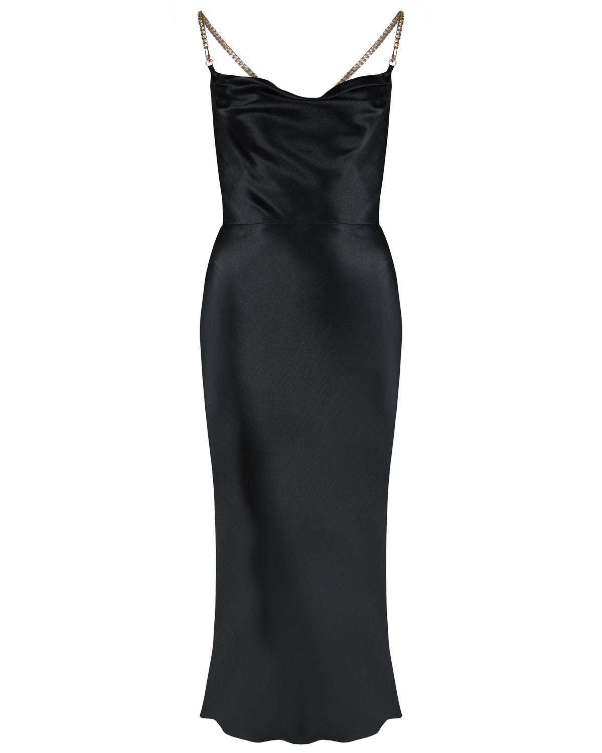 SATIN LOVE! Deze prachtige Dallas jurk heeft een lange lengte gecombineerd met een waterval hals en gouden chain bandjes. Een perfecte jurk voor de feestdagen.... Lees meer
