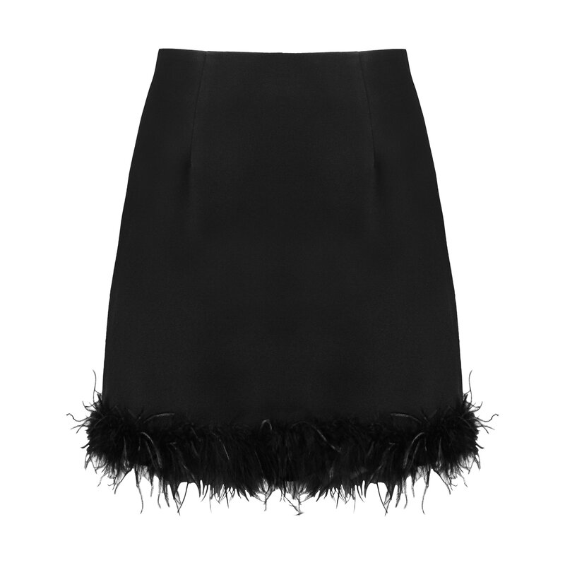 TREND ALERT! De veren trend is een echte musthave! De Dana rok heeft een aansluitende fit met een hoge taille. Door de rits sluiting en elastiek aan de achterkant sluit de rok mooi aan. Combineer met het bijpassende jasje voor een complete look.