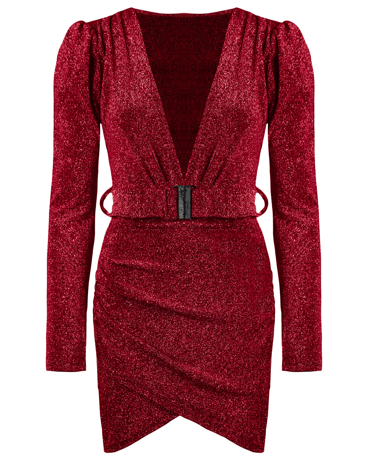 JAIMY Deep v belted sparkle dress red