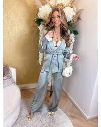 Steel de show met deze chique satijnen blazer. De strikceintuur met franjes geeft een trendy touch aan deze classy look. Perfect voor een dinner date of business event met flair! Maak de look af met de Dhanee silk pantalon.... Lees meer