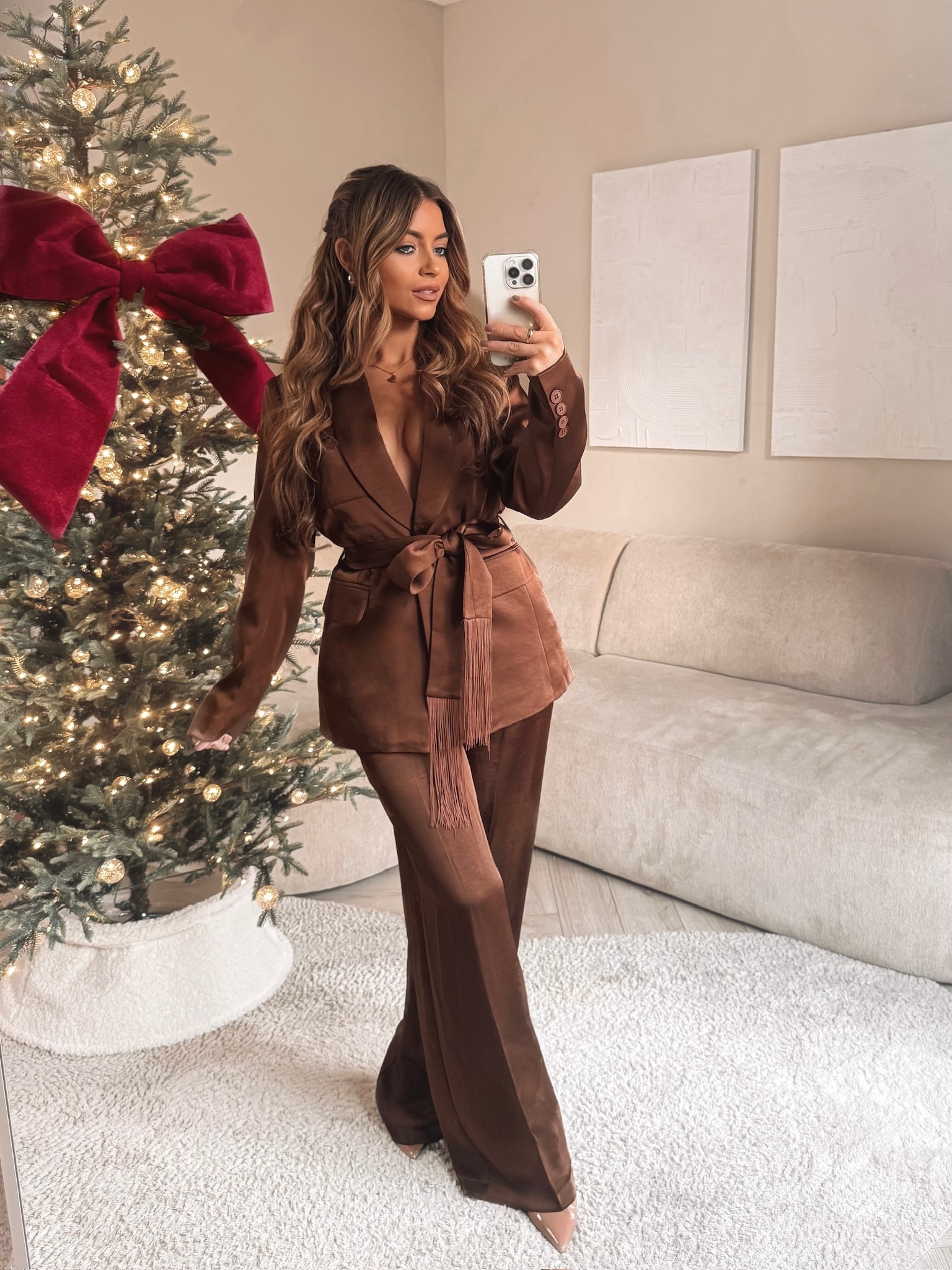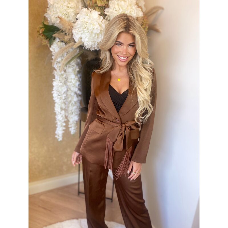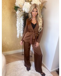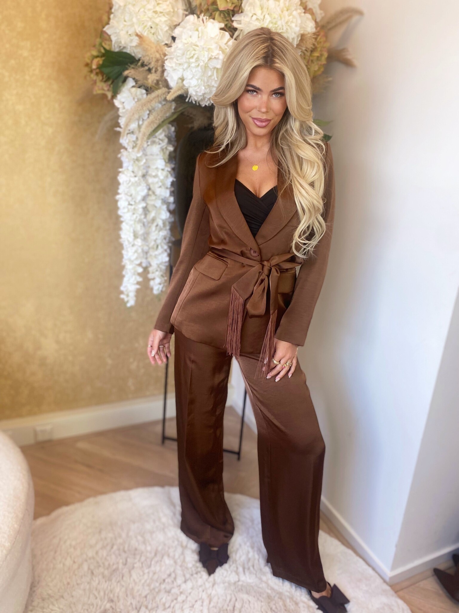 CLASSY! Deze elegante satijnen pantalon zit niet alleen heerlijk, maar straalt pure klasse uit. Met zijn vloeiende pasvorm en subtiele glans is hij perfect voor zowel een stijlvolle werkdag als een avondje uit.... Lees meer