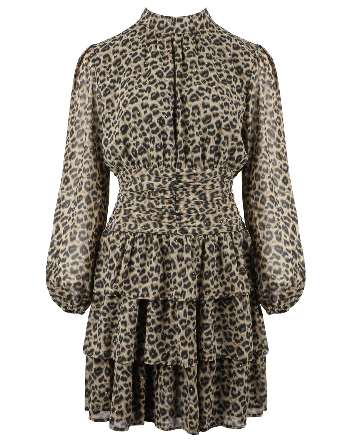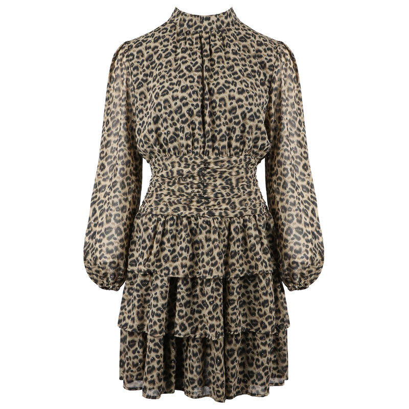 PRINT LOVE! Deze jurk heeft een prachtige luipaard print met diamantjes. De jurk heeft een hoge hals en geplooide details in de taille wat zorgt voor een afslankend effect. Combineer de jurk met high heels of boots om de look af te maken.... Lees meer