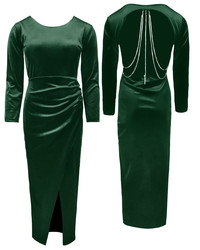 JAIMY Diamond detail open back velvet dress green