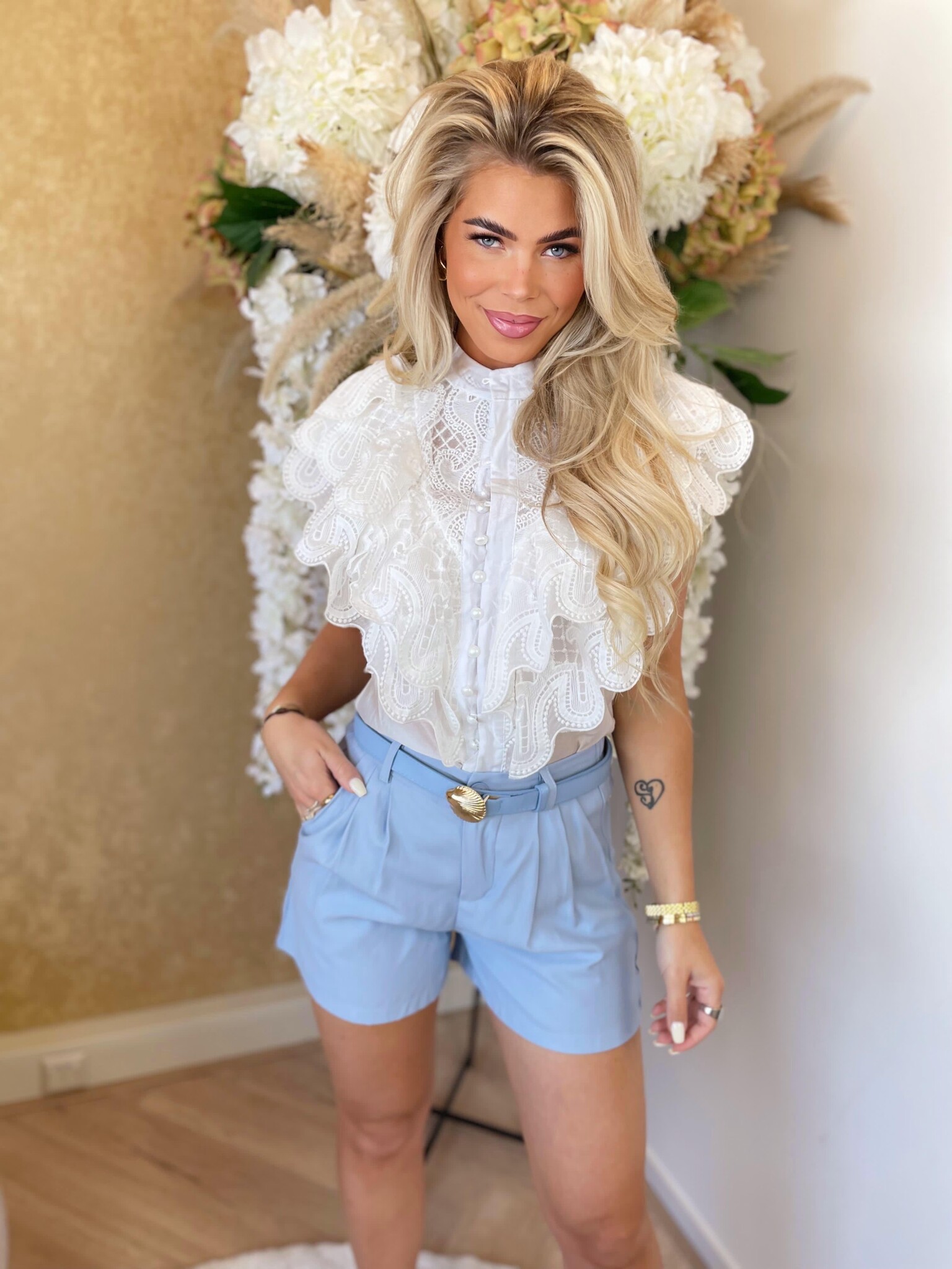 SUMMER CHIQUE! Dit shortje heeft een leuke gold detail schelp gesp. Perfect voor classy outfit. Leuk te combineren met loafers, een blousje of een basic top. Een musthave voor iedere garderobe!... Lees meer