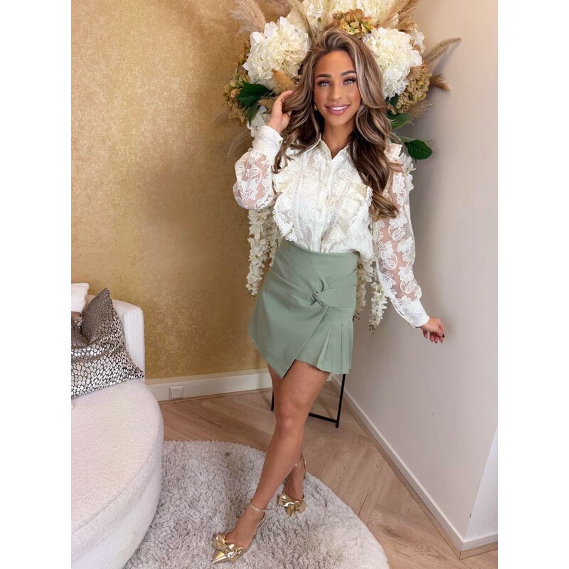 LACE LOVE! De Elise blouse is een stijlvolle blouse van kant met ruffles voor een moderne, vrouwelijke uitstraling. Combineer met jouw favoriete pantalon, skort of jeans.