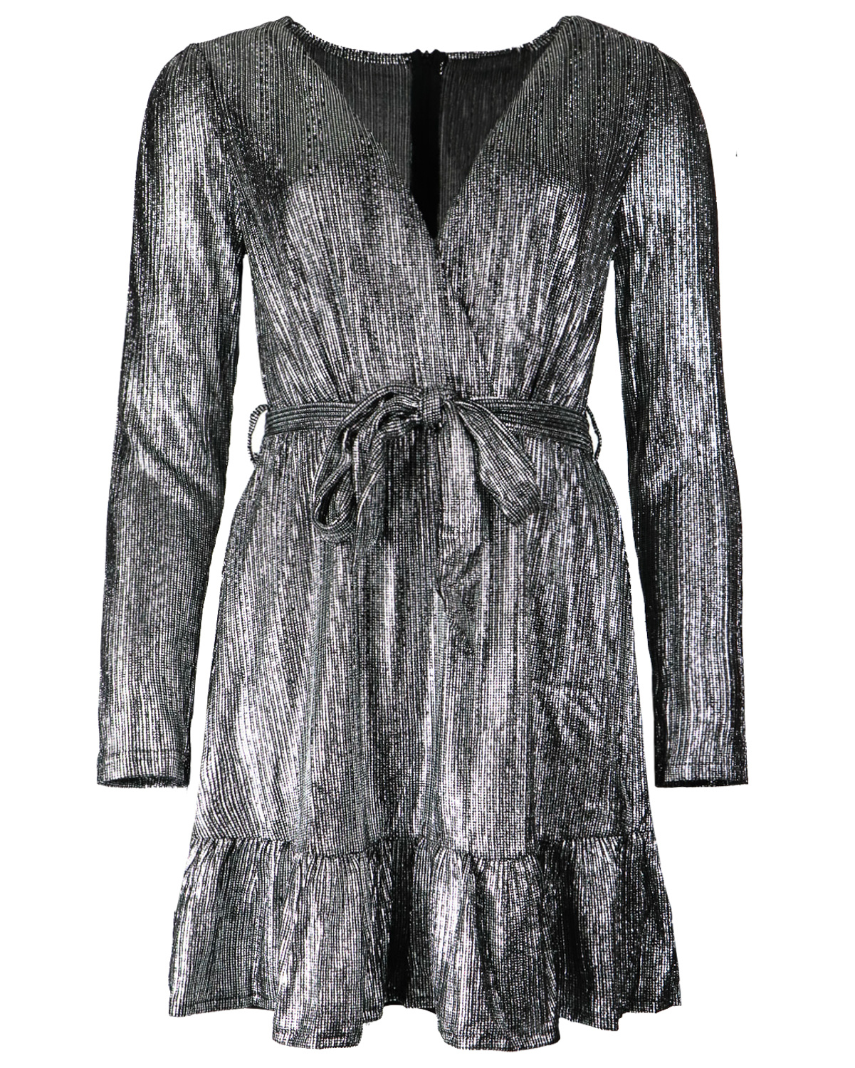 SPARKLES! De Ellen sparkle dress heeft een prachtige subtiele sparkle, de jurk is afwerkt met een ruffle aan de onderkant en ceintuur in de taille.